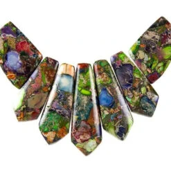 Dakota Stones Mixed Impression Jasper And Pyrite Pointed Pendant Set (7pc)