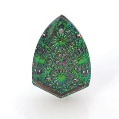 Glass Kaleidoscope Shield Pendant, 25x17mm – Crystal Volcano (Each)