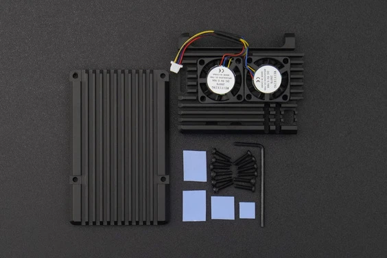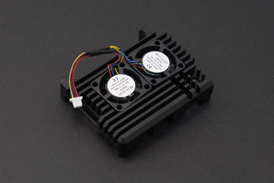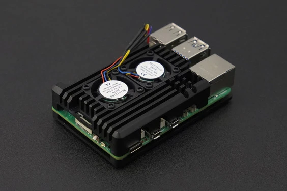 A dual-fan metal case designed specifically for Raspberry Pi 5, made of aluminum alloy material. It fits perfectly with the Raspberry Pi, providing effective protection for the mainboard. Additionally, it is equipped with two adjustable-speed fans that can automatically adjust their speed based on the temperature of the Raspberry Pi 5, ensuring efficient heat dissipation.