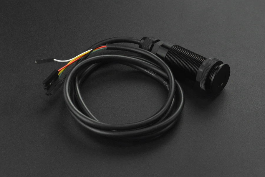 The sensor metal black shell adopts a threaded barrel design and its probe comes with an optical cover. The integrated design makes the product able to effectively filter optical interference, waterproof and shockproof. The sensor uses an invisible laser and there is a voltage regulator circuit inside the module. It operates at 5V~36V and employs an industrial 485 chip, which supports Modbus-RTU protocol and works well with industrial 485 devices. The sensor has an alarm output line that will be triggered to output Low steadily when the measurement distance is smaller than the user-set threshold.