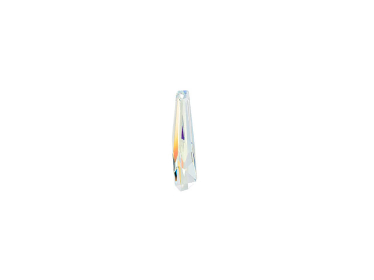 Add grand style and magical color to your designs with the PRESTIGE Crystal Components 6017G 30mm grand Crystalactite partly frosted pendant in Crystal AB. Crystalactite pendants take ice stalactites as their inspiration. These crystal pendants feature irregular shape and matte facets for a modern yet organic feel. The frosted effect is used on precisely defined facets to enhance sparkle. These glittering examples of wild romance look like raw cut stone and will give your designs an innovative style. This grand pendant features a bold size and a clear color with an iridescent finish.