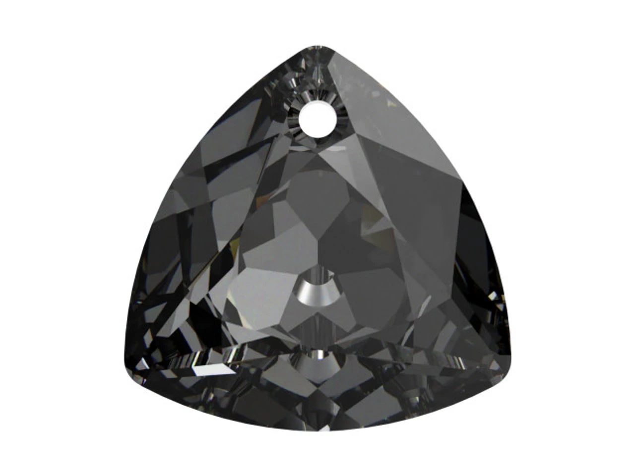 Make your designs shine with this PRESTIGE 6434 Trilliant Cut Pendant in Crystal Silver Night. This pendant features a rounded triangle shape with brilliant facets that accent the design. The front features a flat center while the back has rounded point design. There is a stringing hole at the top, so it is easy to add this pendant to your designs.