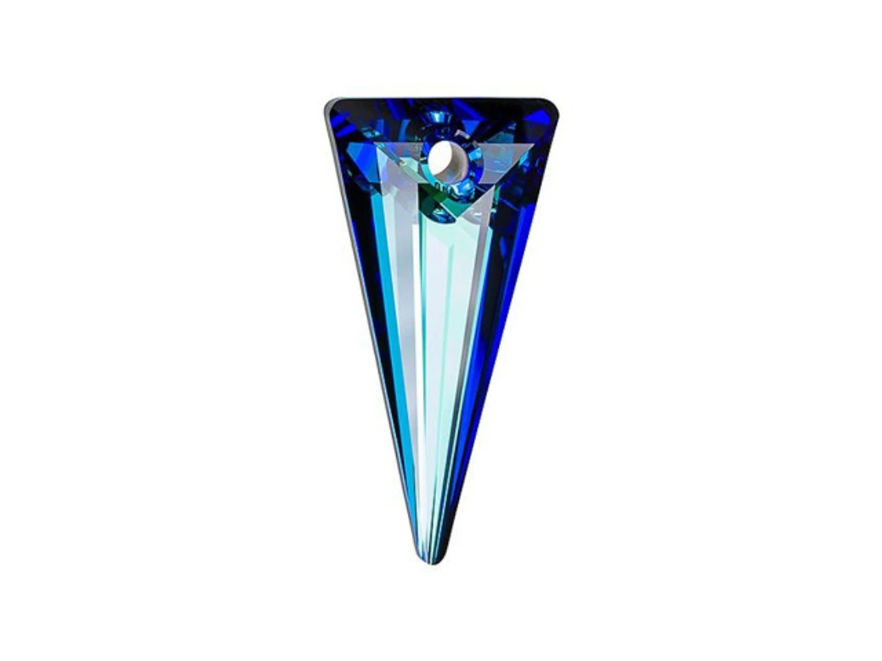 Create a splash of spiky sparkle in your designs with the PRESTIGE Crystal Components 6480 39mm spike pendant in Crystal Bermuda Blue with protective coating. This pendant features a geometric triangular shape can be used in anything from classy jewelry sets to spiky glam rock pieces. You can pair it with leather, chain, pearls and more. It’s sure to dress up any look with cool sparkle. Everyone will notice this pendant in your designs, thanks to its eye-catching size. This pendant features vibrant shades of blue sparkle that light up from every angle.