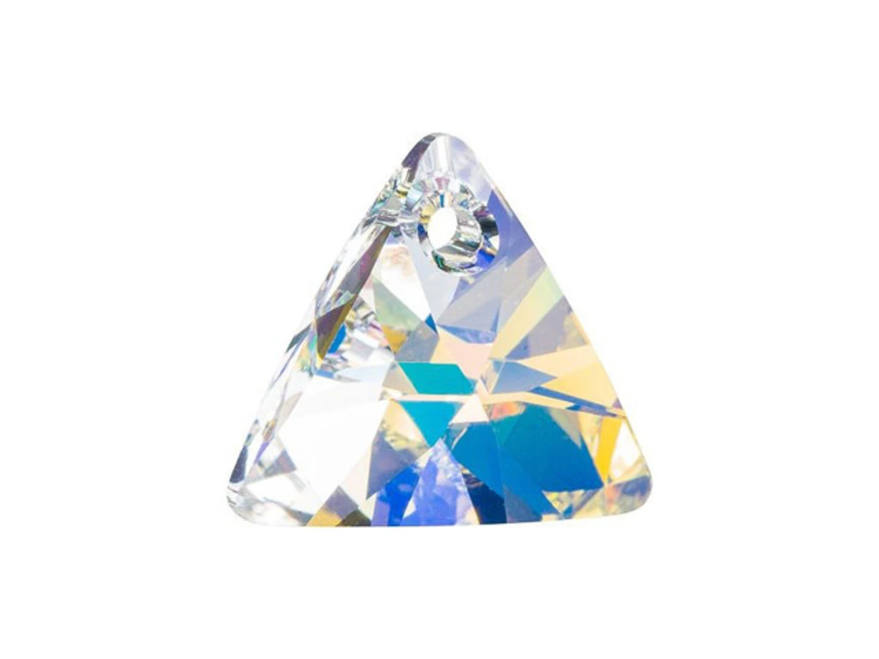 Enhance designs with geometric flair using the PRESTIGE Crystal Components 6628 16mm triangle pendant in Crystal AB. The triangular shape of this pendant is full of versatility. You can use it in demurely sophisticated looks or opulent eye-catchers. Try them in chandelier earrings, bold layered necklaces or more simple designs. It’s sure to capture the imagination, thanks to its sparkling facets. This large pendant displays a brilliant clear color with an iridescent finish.