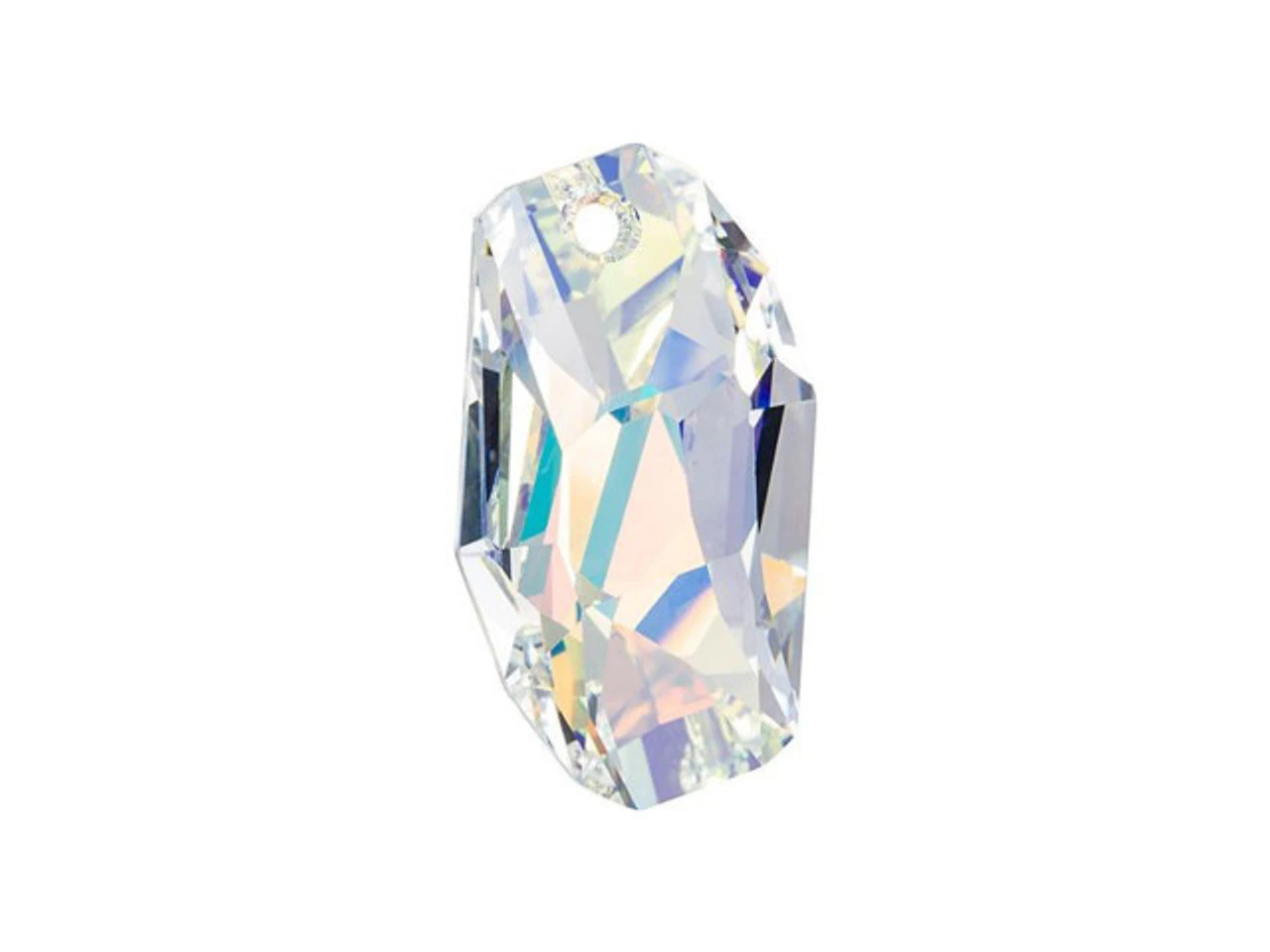 Create an extraordinary look with a fascinating sense of depth using the PRESTIGE Crystal Components 6673 38mm meteor pendant in Crystal AB. This pendant is striking and innovative statement piece with a bold 3D effect. It’s perfect for futuristic or luxuriously glamorous looks. The stringing hole is located at the top of the shape, so you can dangle it from your designs. This large pendant is perfect for creating a spectacular focal in your necklace designs. This pendant features a clear color coated with a magical iridescent finish.