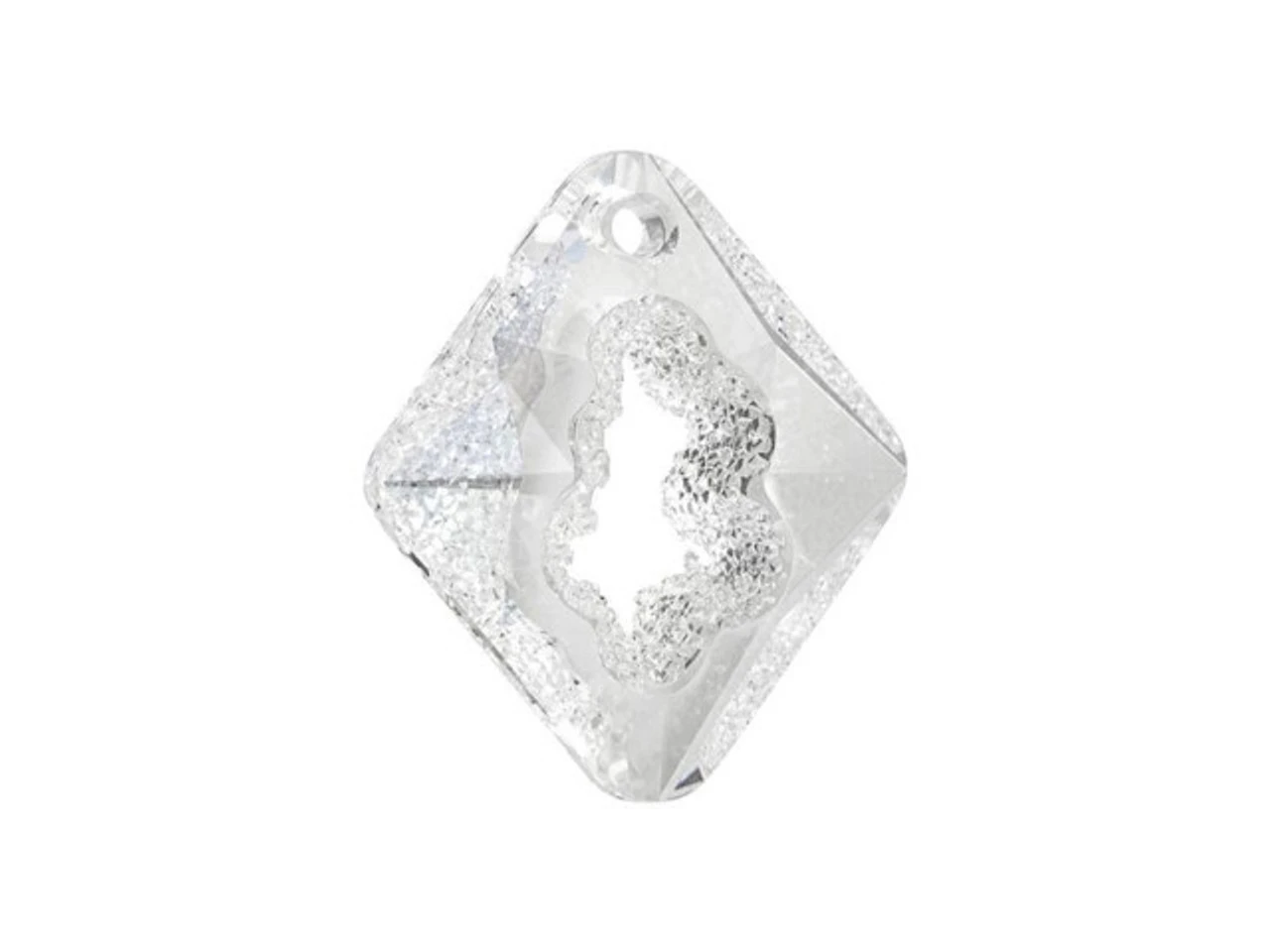 Glittering style can be yours with this PRESTIGE Crystal Components pendant. The Growing Crystal Rhombus pendant is part of PRESTIGE Crystal Components’s Designer Edition series and was created by fashion designer Iris van Herpen. It features a rhombus or diamond shape with a cut-out center. The edges of the center cut-out feature up to 500 hand-embedded double cones at the center to maximize light refraction. This pendant recalls the naturally occurring fractured surfaces of crystal geometry. Use it to create a druzy or geode look in your designs. This large pendant is the perfect centerpiece for dazzling necklaces. It features a versatile and brilliant clear color.