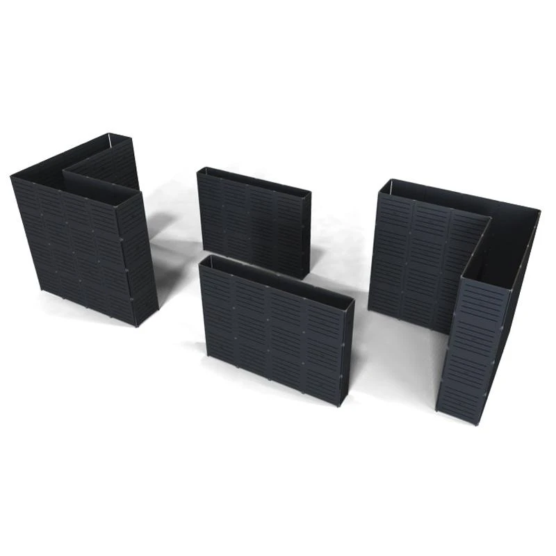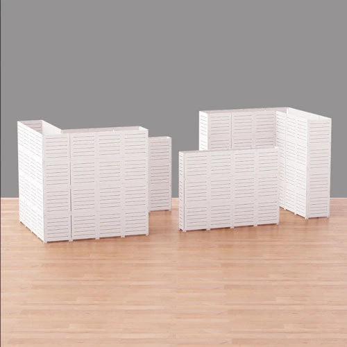 Each panel in this kit is 24″ X 24″(60cmX60cm exact) and weighs 4.8lbs. The panels have 6 slats on one side and are solid on the opposite side. The panels can all be installed with either the slatwall side or solid side facing out in thousands of different configurations.